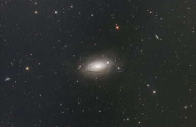 Messier 63 (auch als NGC 5055 bezeichnet) ist eine Spiralgalaxie mit den Abmessungen 12,6′ × 7,2′ und der scheinbaren Helligkeit von 8,5 mag im Sternbild Jagdhunde am Nordsternhimmel. Das auch Sonnenblumen-Galaxie genannte Objekt ist vom Sonnensystem etwa 25 Millionen (je nach Quelle auch 30 oder 37 Mio.) Lichtjahre entfernt und besitzt einen Durchmesser von ca. 50.000 (65.000) Lichtjahren. Ungewöhnlich und namensgebend sind die vielen, in der Spitzer-Aufnahme besonders gut sichtbaren, knötchenartigen Verdichtungen in ihren Spiralarmen, es handelt sich dabei um Sternentstehungsgebiete und leuchtende Gaswolken.