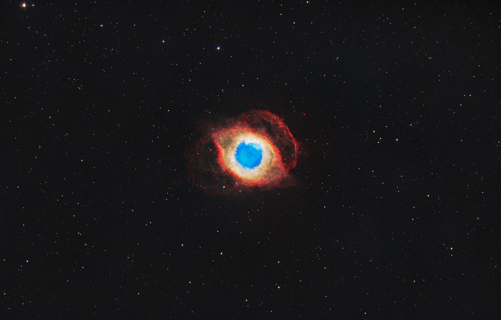 Der Helixnebel ist mit einer Entfernung von etwa 650 Lichtjahren einer der nächsten planetarischen Nebel und damit einer der mit dem größten scheinbaren Durchmesser. Daher können in seiner Hülle auch Details der Gasstruktur aufgelöst werden.