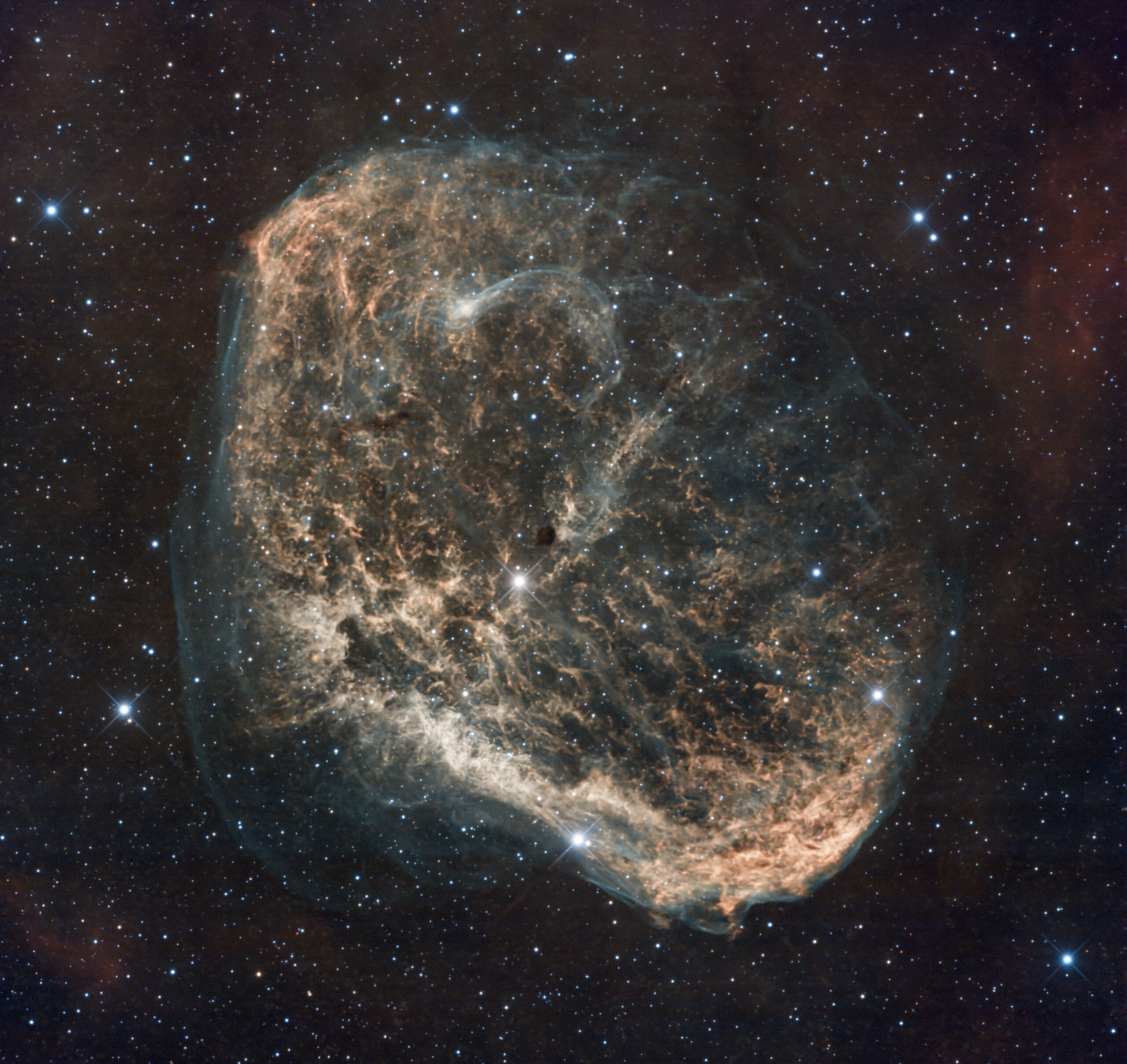 Equipment: Skywatcher EQ8-R // MGEN 3 Autoguiding // Celestron RASA 11″ Astrograph (620mm Brennweite) // ZWO ASI2600MC Pro // IDAS NBZ UHS